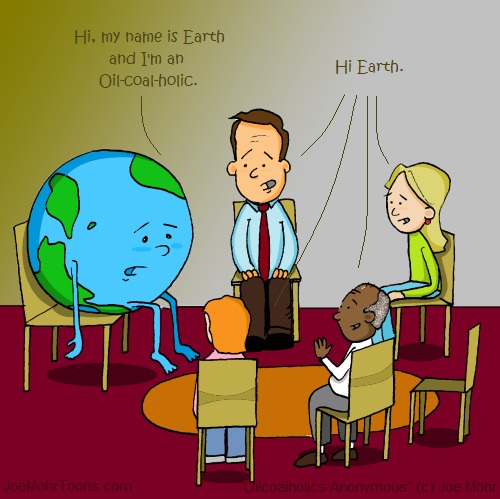“Earth Attends Oil-Coal-holics Anonymous Meeting” re-posted from Wend Magazine’s “Greenery” page.