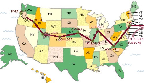 The first cartoon to attempt to slackline around the world, took off this morning from the Fremont Bridge (just a few blocks from Wend headquarters) in Portland, OR.