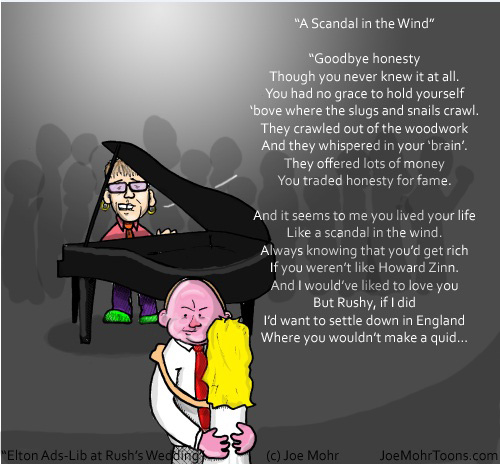 I was floored to find out that Elton John sang at Rush Limbaugh’s wedding. That is, until I heard what he sang…