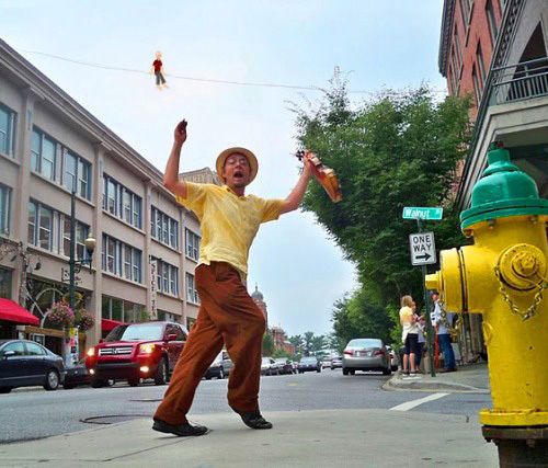 Was treated to some great street entertainment as I strolled above lovely downtown Asheville, North Carolina. Ian Moore, “fiddler and such-like” was singing, dancing, and fiddling to great fanfair just outside of Asheville’s famed bookstore, Malaprops (across the street from a wonderful beer garden and restaurant intuitively dubbed The BierGarden).