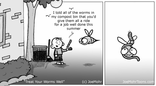 Follow the rest of the Hank D and the Bee series at JoeMohrToons.com. For cartoon updates and other green goings-on, follow Joe on Twitter @GreenCartoons.