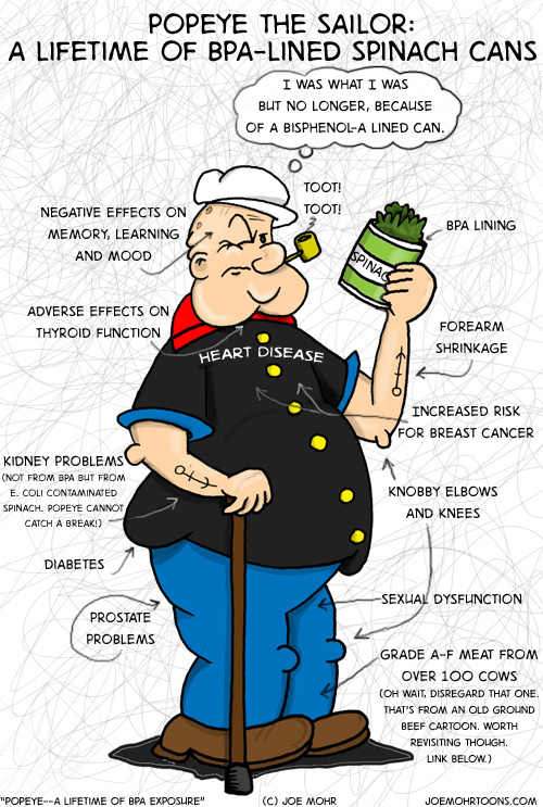 November 23, 2010January 10, 2011 Canned Spinach Killing Popeye! (cartoon) More on BPA… BPA Ban Blocked from Food Safety Bill Bisphenol A linked to diabetes, heart disease in humans BPA wikipedia site …and E. coli Long-Term Effects of E-Coli Food Poisoning Ground Beef: The Cartoon Make someone laugh (or make someone else angry). Share this cartoon! Click to share on X (Opens in new window) X Click to share on Facebook (Opens in new window) Facebook Click to share on LinkedIn (Opens in new window) LinkedIn Click to email a link to a friend (Opens in new window) Email Click to share on Reddit (Opens in new window) Reddit Click to share on Tumblr (Opens in new window) Tumblr Click to share on WhatsApp (Opens in new window) WhatsApp Click to print (Opens in new window) Print Click to share on Pinterest (Opens in new window) Pinterest Click to share on Threads (Opens in new window) Threads More Click to share on Pocket (Opens in new window) Pocket Click to share on Telegram (Opens in new window) Telegram Like Loading... Published by Joe Mohr Syndicated cartoonist since 2007, author, illustrator, lyricist, dad, hubby, bald. View all posts by Joe Mohr