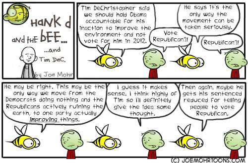 For more on Tim’s reasoning behind voting Republican in 2012 read the Grist article linked below. It’s a scary thought. Like Hank, I still need to wrap my head around it…