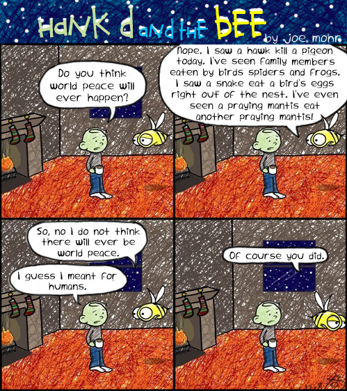 Follow the rest of the Hank D and the Bee series at JoeMohrToons.com. For cartoon updates and other green goings-on, follow Joe on Twitter @GreenCartoons.