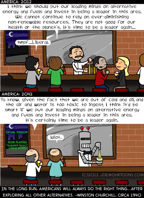 Inspired by the 70 year-old Winston Churchill quote: “In the long run, Americans will always do the right thing — after exploring all other alternatives.”