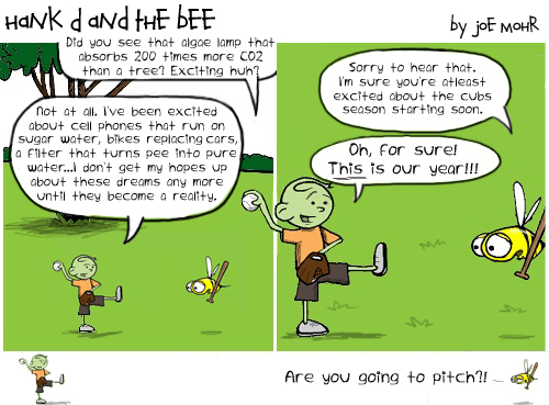 Follow the rest of the Hank D and the Bee series at JoeMohrToons.com. For cartoon updates and other green goings-on, follow Joe on Twitter @GreenCartoons.