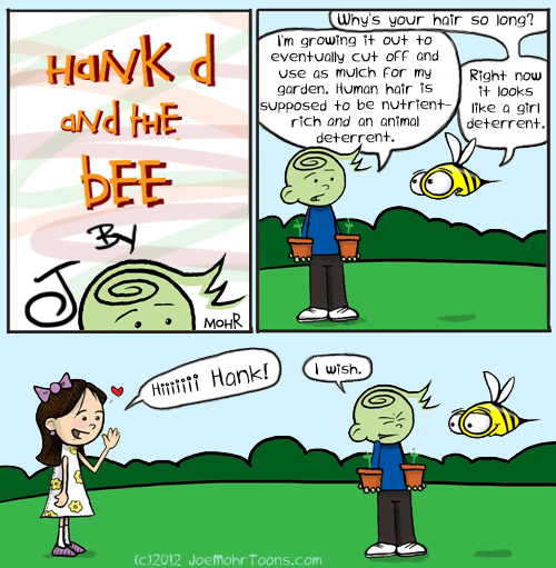 Follow the rest of the Hank D and the Bee series at JoeMohrToons.com. For cartoon updates and other green goings-on, follow Joe on Twitter @GreenCartoons.