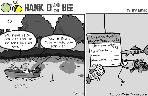 Catch up on the rest of the Hank D and the Bee series at JoeMohrToons.com. For cartoon updates and other green goings-on, follow Joe on Twitter @GreenCartoons.