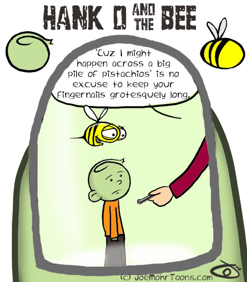 Free signed Hank D and the Bee cartoon for anyone who sends me a photo of themselves painting a pistachio to look like Bee!