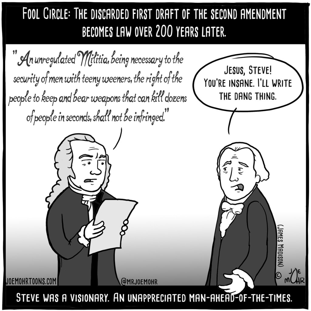 If only the gun-nuts of the U.S. were well-regulated. More importantly, I wish the “arms” made legal by the 2nd Amendment were the arms that existed when the amendment was written–muskets. Muskets at best could get off three shots in a minute–contrast that with the (until recently) TOTALLY LEGAL bump-stocked AR-15 that can fire as many as 9 rounds per second!