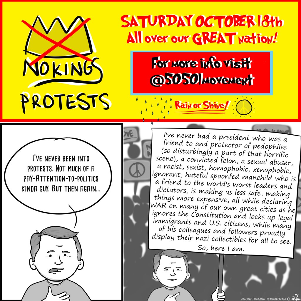 Hey Regular Guy, get off the couch, put down your golf clubs! It’s time to show up at one of the many NO KINGS rallies in our great nation.