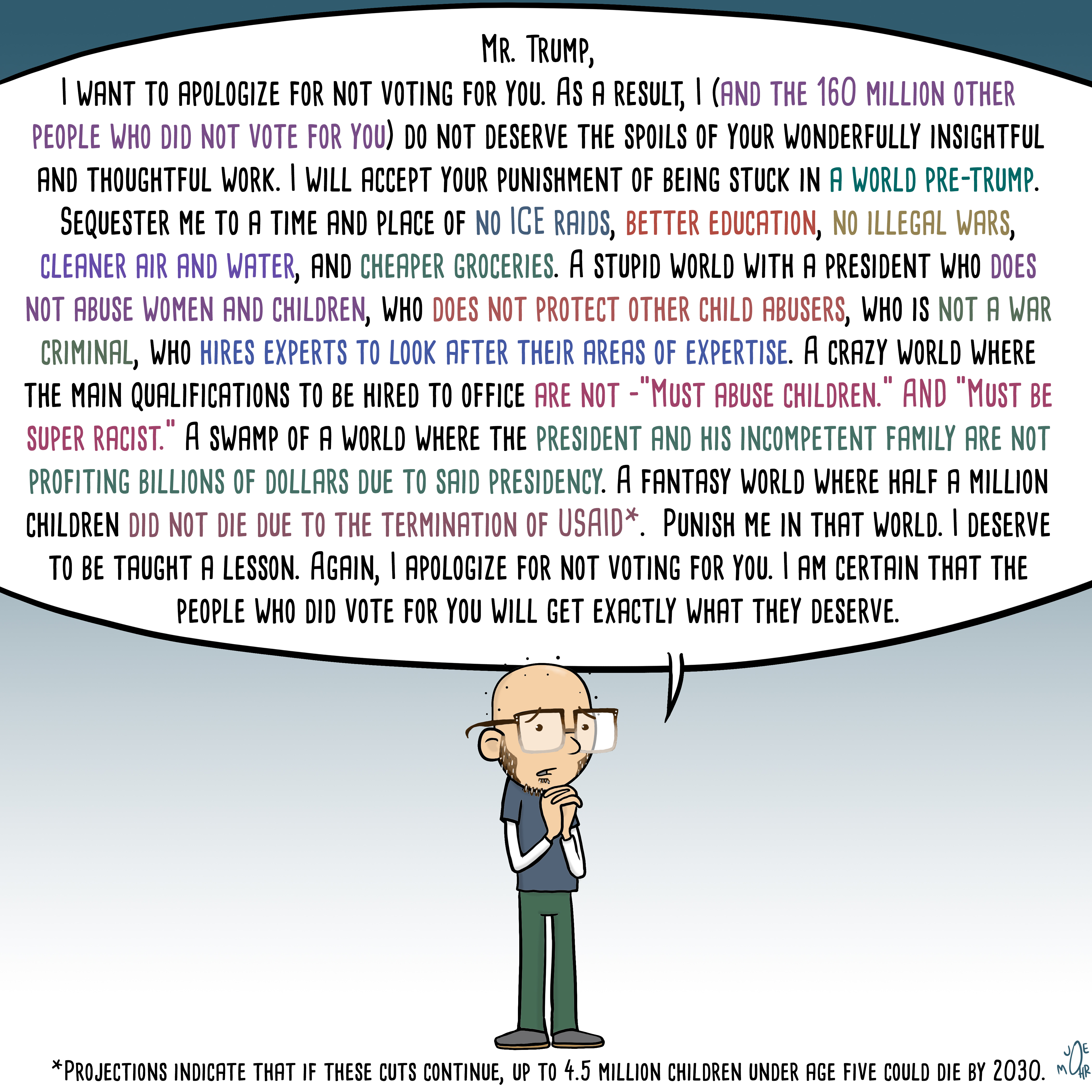 Joe Mohr has been a cartoonist since 2007. He has been published in magazines, newspapers, books, textbooks, and websites worldwide. He proudly works with Cartoon Movement and many other publications and organizations.